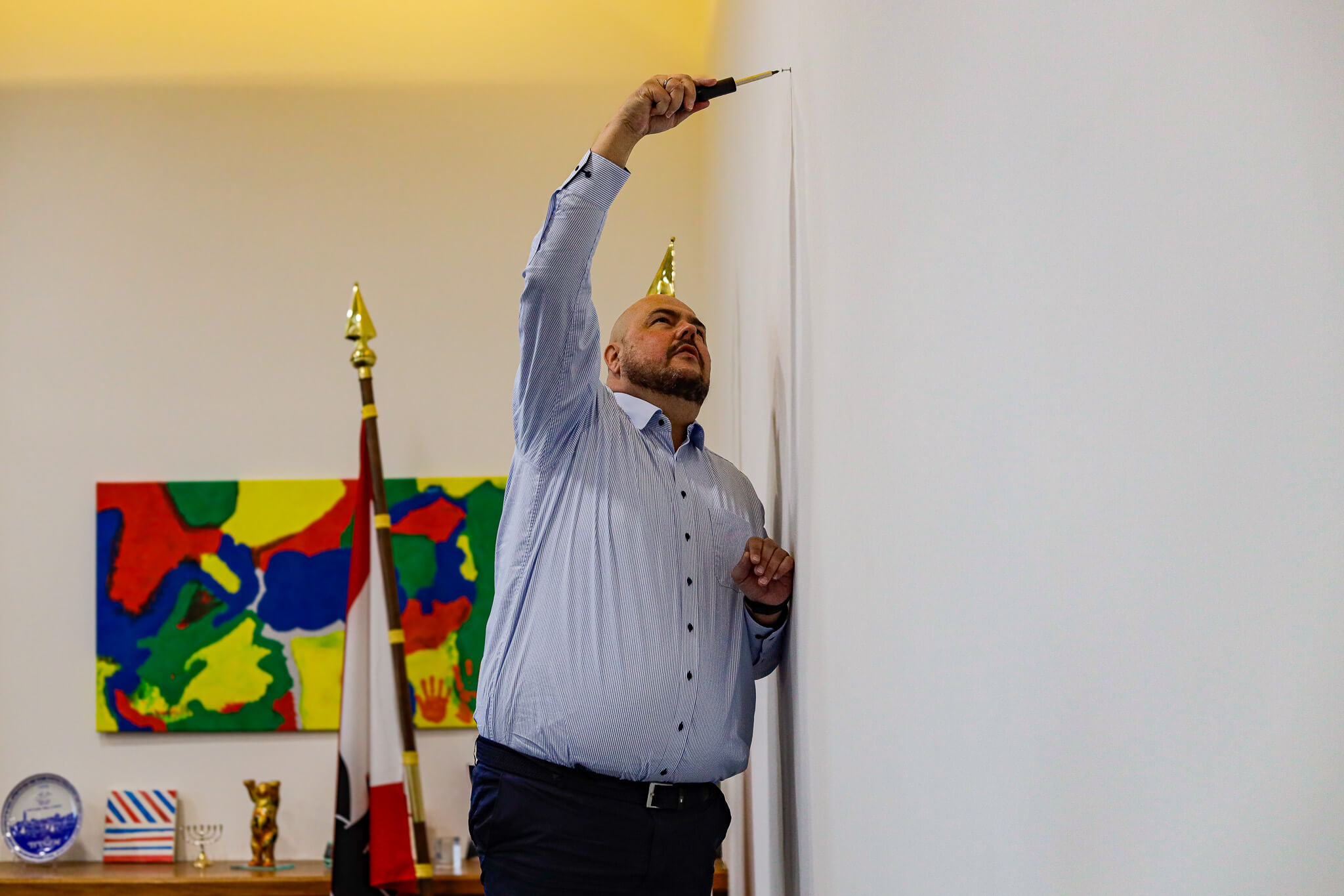 Bezirksbürgermeister Frank Bewig hatte das Werk erstmals beim Tag der offenen Tür der Mosaik-Betriebsstätte Spandau am Askanierring im November vergangenen Jahres gesehen. Nun hängt es an seinem neuen Platz im Rathaus Spandau.